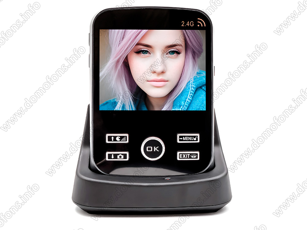 Видео-трубка работает от аккумулятора. Если кто-то нажмет кнопку вызова, то на трубке заиграет мелодия вызова и появится видеоизображение с камеры, ответив, Вы сможете пообщаться с гостем и пропустить его на территорию. Беспроводная передача аудио-видеосигнала. Сигнал передается по радиоканалу на частоте 2,4 ГГц, благодаря чему Вам не потребуется прокладывать провода между вызывной панелью видео-трубкой.